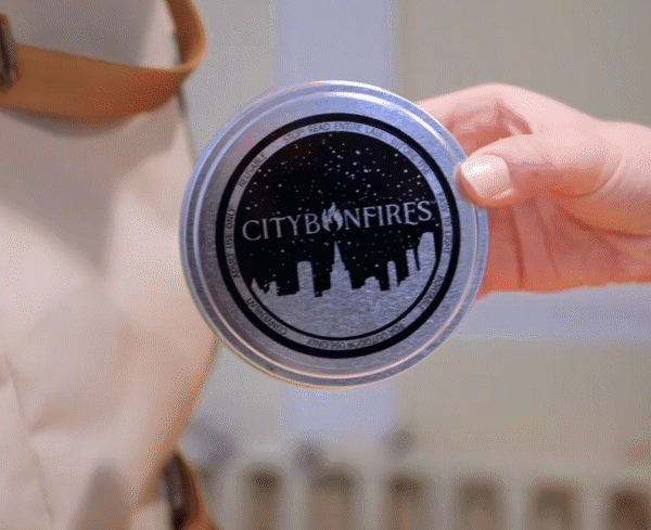 City Bonfires is made with 100% recyclable steel tins, 100% nontoxic FDA food grade soy wax, and 100% biodegradable, compostable plant-based material.